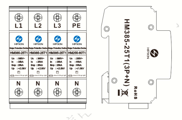 | Impulse current-Iimp(10/350μs) | 25kA(L-N);60kA(N-PE) |